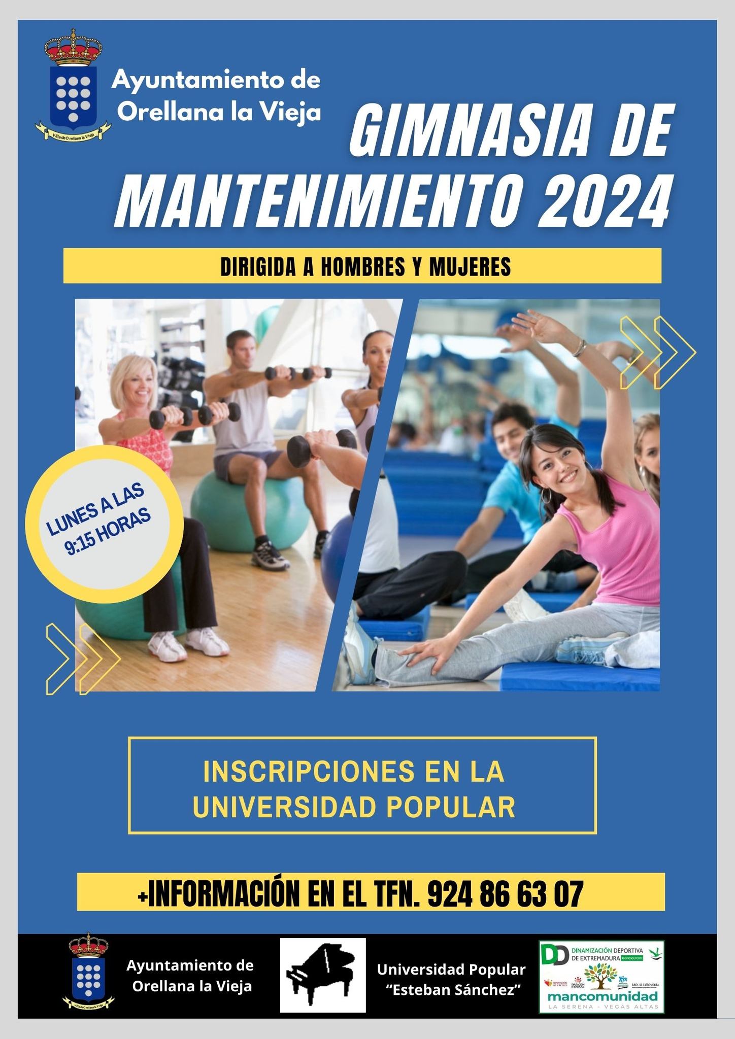 Todos los interesados en las actividades formativas y deportivas, podrán inscribirse en la Universidad Popular o en el teléfono 924 866 307, excepto en iniciación al running, cuyo teléfono de información es el 669 284 434.
