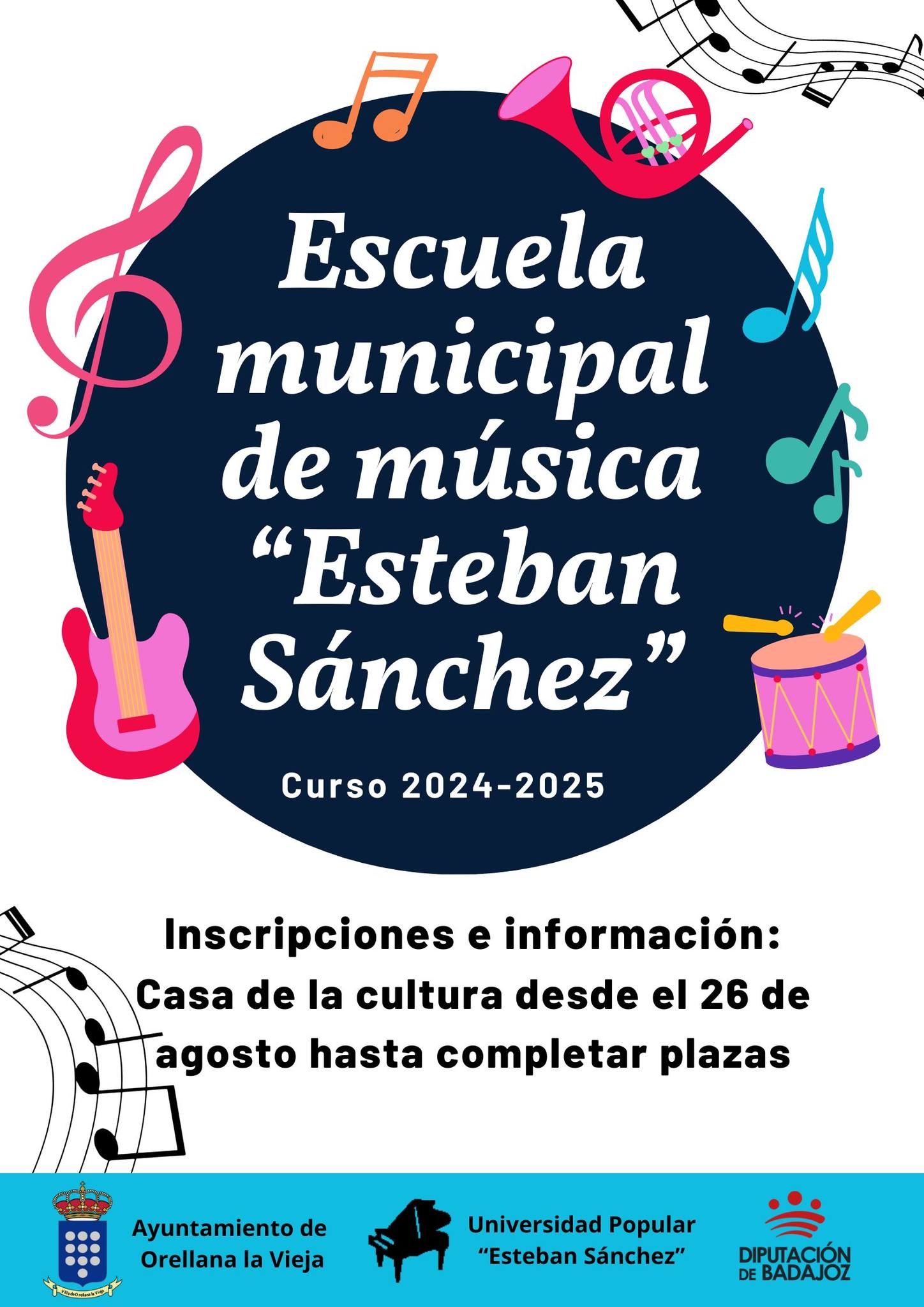Para inscribirse al curso 2024/2025 de la Escuela de Música habrá que esperar a partir del 26 de agosto. Como en años anteriores, está previsto que se impartan enseñanzas en guitarra clásica y eléctrica, piano y batería.