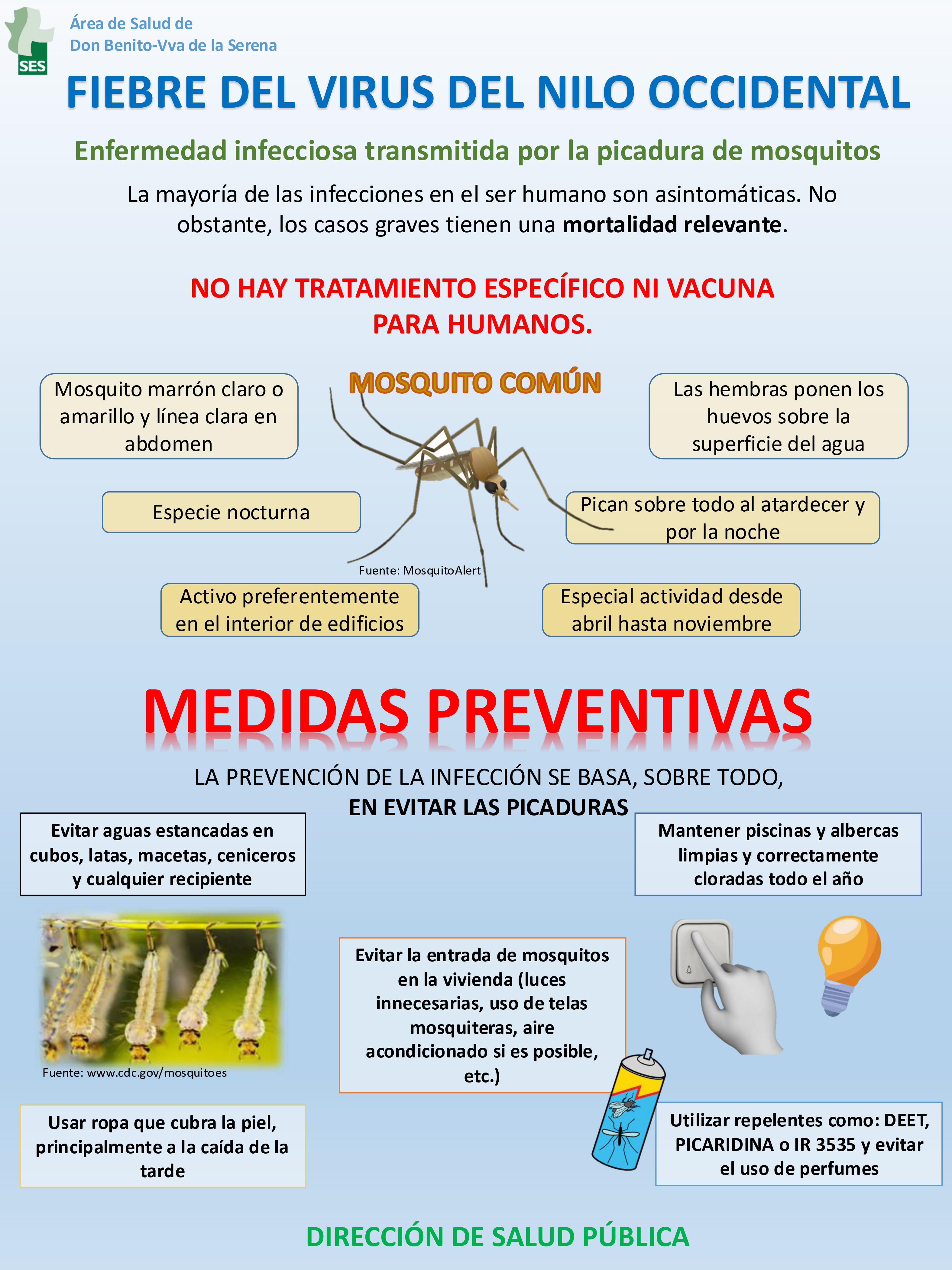 El Área de Salud de Don Benito-Villanueva ha emitido a todos los ayuntamientos del área información con algunas medidas preventivas contra la Fiebre del Virus del Nilo Occidental.