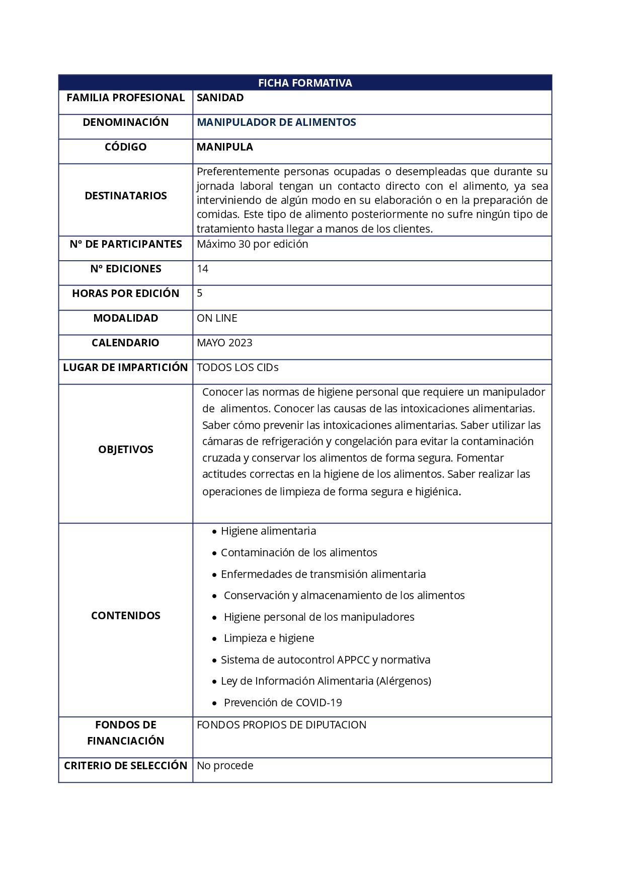 El curso de Manipulador de Alimentos va destinado a personas ocupadas o desempleadas que durante su jornada laboral tengan contacto directo con el alimento, ya sea interviniendo de algún modo en su elaboración o en la preparación de comidas.